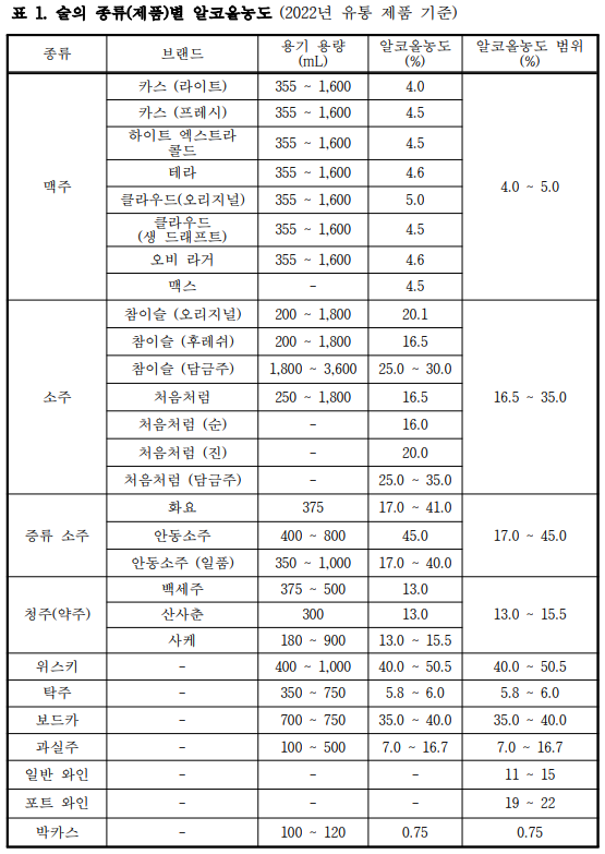표준잔 1잔 : 알코올 14g (소주 약 2잔)