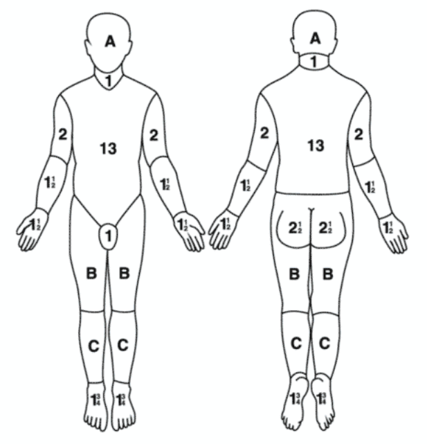 - 모든 연령: Lund-Browder 차트 적용 (연령별 신체 비율 차이 반영)