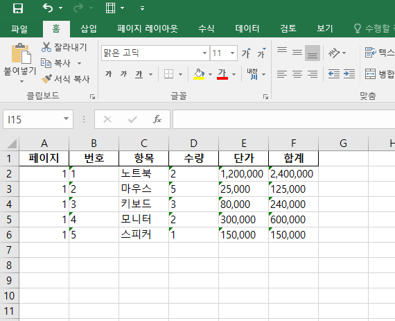 - 각 페이지에 하나의 표가 있다고 가정합니다