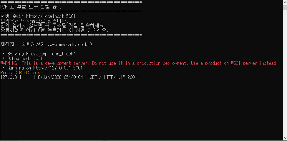 PDF_Table_Extractor_by_Medcalc.exe 파일을 더블클릭합니다.