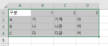 - 표의 행과 열이 전환되어 나왔습니다.